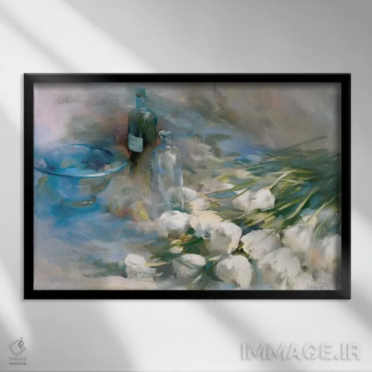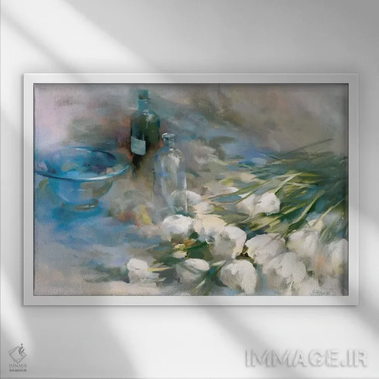 براساس پالت سرد اثر، قاب سفید مات (فریم باریک) پیشنهاد اول است و نقرهای برسخورده (متالیک) مکمل. برای سفارشهای پروژهای با ابعاد و قابهای اختصاصی با ایماژ در تماس باشید.