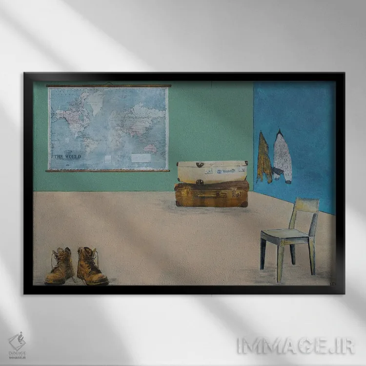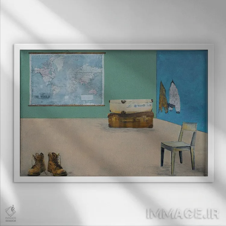 براساس پالت ترکیبی اثر، قاب بلوط روشن (چوبی) پیشنهاد اول است و استخوانی ملایم مکمل. برای سفارشهای پروژهای با ابعاد و قابهای اختصاصی با ایماژ در تماس باشید.