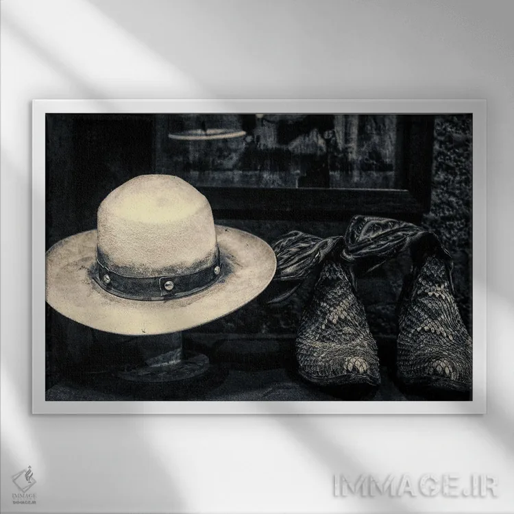 این تابلو با عنوان «استتسون و بوت (کلاه کابوی و چکمه)» اثرِ «استیفن هاجتس»، کنار آینه و رختکن یا اتاق لباس عالی مینشیند.