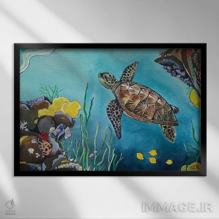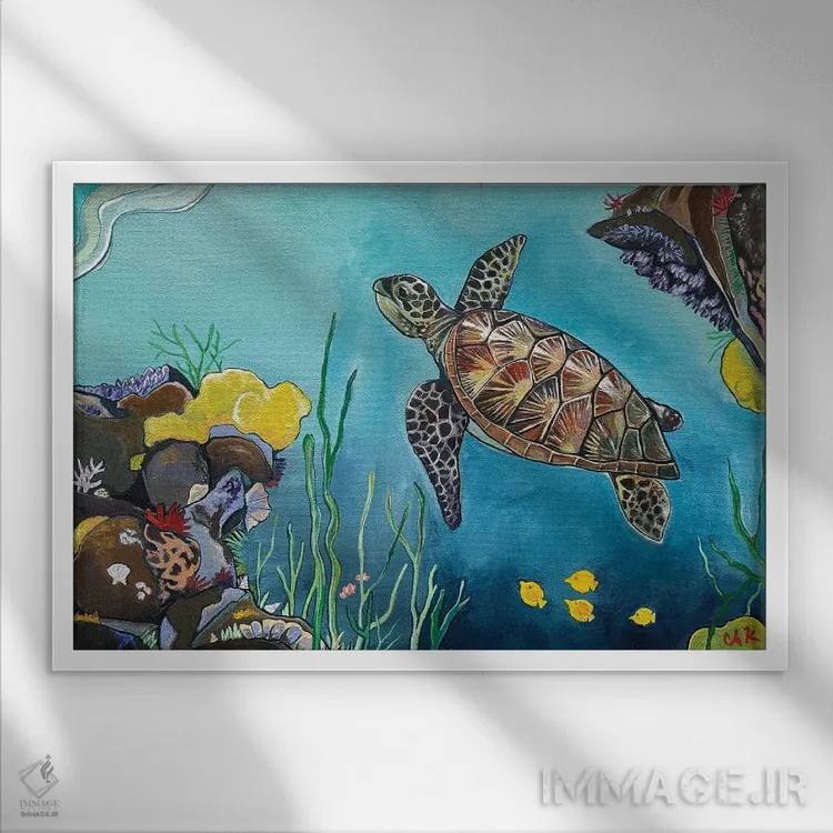تابلو دکوراتیو لاک پشت زیر دریا اثر هیدن هیل