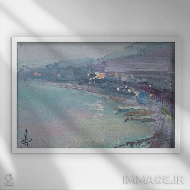 براساس پالت سرد اثر، قاب سفید مات (فریم باریک) پیشنهاد اول است و نقرهای برسخورده (متالیک) مکمل. برای سفارشهای پروژهای با ابعاد و قابهای اختصاصی با ایماژ در تماس باشید.
