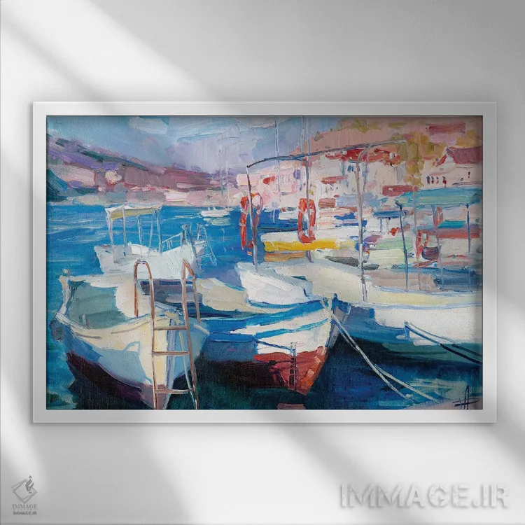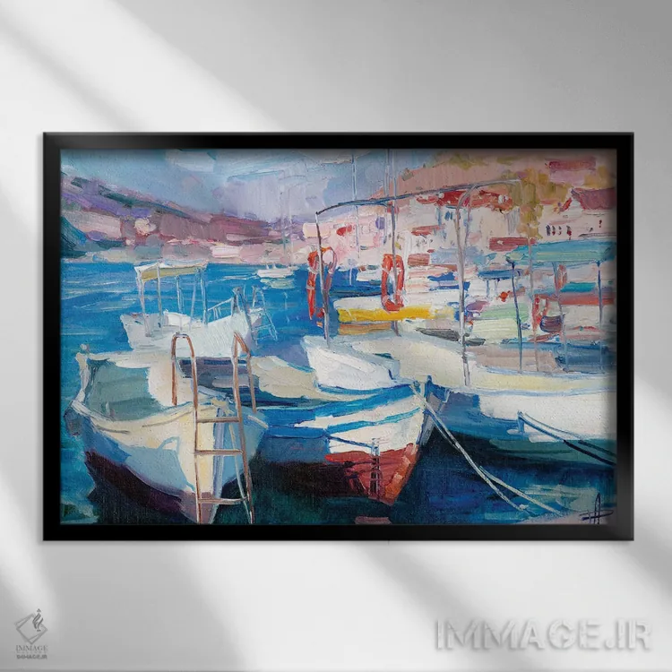 براساس پالت ترکیبی اثر، قاب تیک گرم (چوبی) پیشنهاد اول است و مشکی مات (فریم متوسط) مکمل. برای سفارشهای پروژهای با ابعاد و قابهای اختصاصی با ایماژ در تماس باشید.