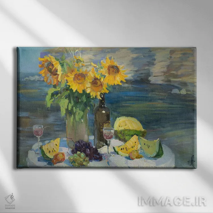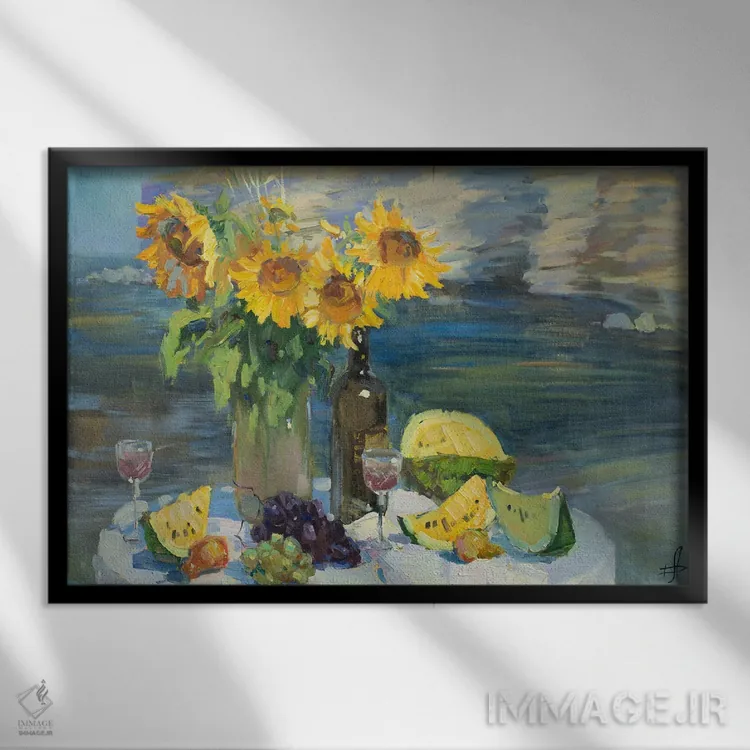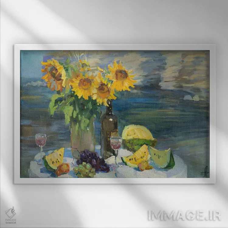 این تابلو با عنوان «هندوانههای زرد» اثرِ «کنتس آرت (هنرمند یا استودیو)»، حسِ گرم و صمیمی به فضا میدهد.