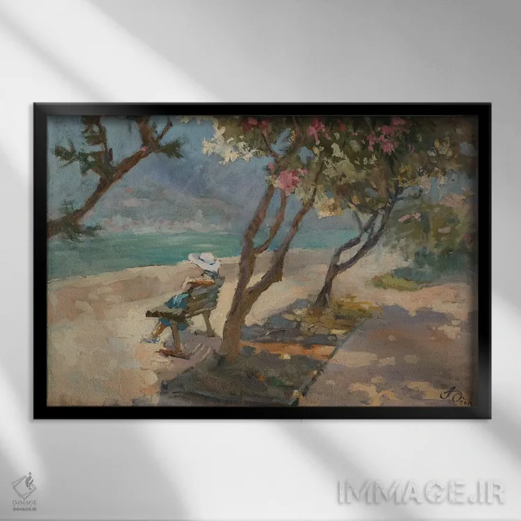 براساس پالت گرم اثر، قاب بلوط روشن (چوبی) پیشنهاد اول است و استخوانی ملایم مکمل. برای سفارشهای پروژهای با ابعاد و قابهای اختصاصی با ایماژ در تماس باشید.