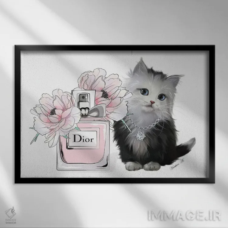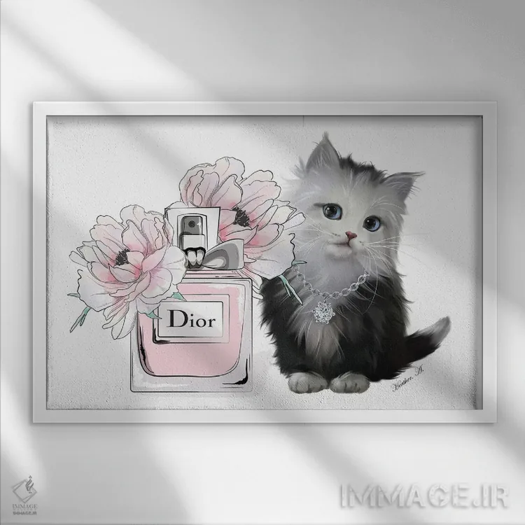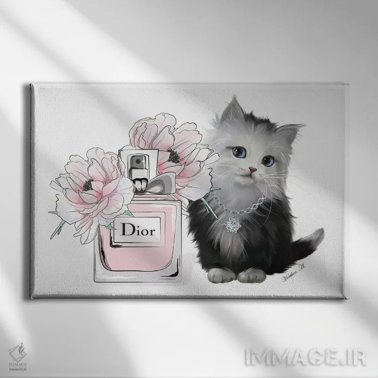 تابلو دکوراتیو بچه گربه بامزه و شکوفه عطر اثر هدر گری