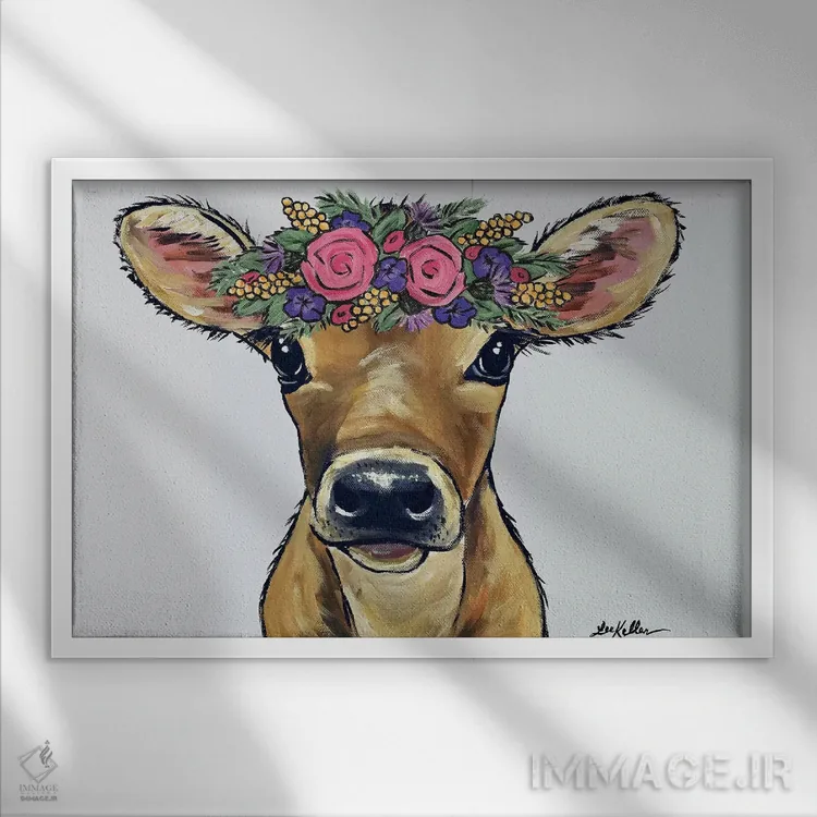 اگر میخواهید دیوار کمی سرزندگیِ محترمانه داشته باشد، «بامبی گاو با گل روی زمینه خاکستری» اثرِ «هیپی هاوند استودیوز (استودیو هنری)» فضا را صمیمیتر و دعوتکنندهتر نشان میدهد، برای دیوار کنار میز کار گزینهٔ مناسبیست. با قاب چوبی یا مشکی، حس مرتبتری پیدا میکند.