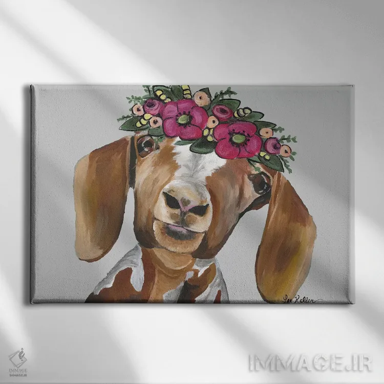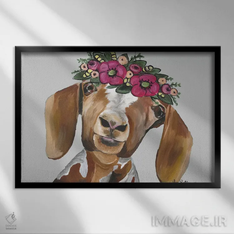 «بز میلی با تاج گل روی خاکستری» اثرِ «هیپی هاوند استودیوز (استودیو هنری)» میتواند به دیوار، انرژیِ نرم و زنده بدهد؛ برای دکورهای مدرن و مینیمال پیشنهاد میشود. با قاب چوبی یا مشکی، حس مرتبتری پیدا میکند.