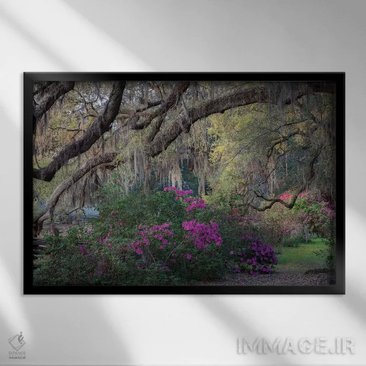 اگر دوست دارید دیوار روشنتر و آرامتر دیده شود، «بلوطها و آزالیاها» اثرِ «اچ. جی. هررا» حس طراوت را بدون شلوغی وارد اتاق میکند، برای فضای غذاخوری گزینهٔ مناسبیست. همیشه بهروز میماند و با فصلها خوب کنار میآید.