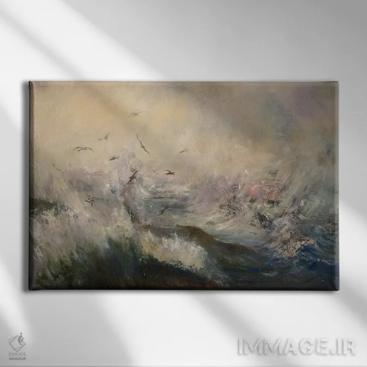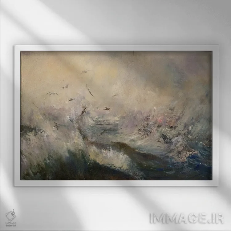 براساس پالت سرد اثر، قاب بلوط روشن (چوبی) پیشنهاد اول است و استخوانی ملایم مکمل. برای سفارشهای پروژهای با ابعاد و قابهای اختصاصی با ایماژ در تماس باشید.