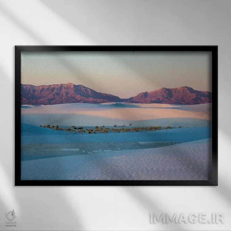 برای سلیقههایی که به جزئیات احترام میگذارند، «نیومکزیکو، چشمانداز تپههای شنی و کوهها در پارک ملی وایت سندز I» اثرِ «هولیس لونی» جلوهٔ اتاق را یک پله حرفهایتر میکند؛ برای فضاهای کمنور که به «نقطهٔ روشن» نیاز دارند پیشنهاد میشود. در کنار قاب مناسب، جلوهٔ کار چند برابر میشود.