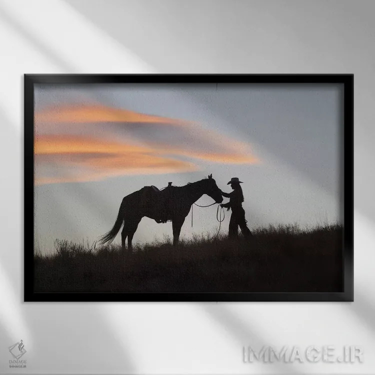 گاهی یک اثر کافیست تا فضا جمعوجور شود؛ «Wyoming، Shell، The Hideout Ranch، Silhouette of Cowgirl with Horse at Sunset I، آمریکا، وایومینگ، شِل، مزرعه هایدآوت، سیلوئت دختر گاوچران با اسب در غروب I» اثرِ «هولیس لونی» سلیقهٔ صاحبخانه را بیاغراق نشان میدهد؛ برای دکورهای کلاسیک با چوب و پارچه پیشنهاد میشود. اگر دنبال زیباییِ بیادعا هستید، این اثر درست مینشیند.