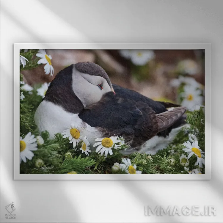 اگر به آثار حیوانات علاقه دارید، «Breidavik، Puffin Nesting Among the Daisies، ایسلند، بریدَویک، پافینها در میان گل مروارید» اثرِ «هولیس لونی» برای دکورهای مینیمال، یک نقطهٔ توجه میسازد، برای نشیمنهای خانوادگی گزینهٔ مناسبیست. به دیوار، قصه میدهد—اما قصهای آرام و شیک.