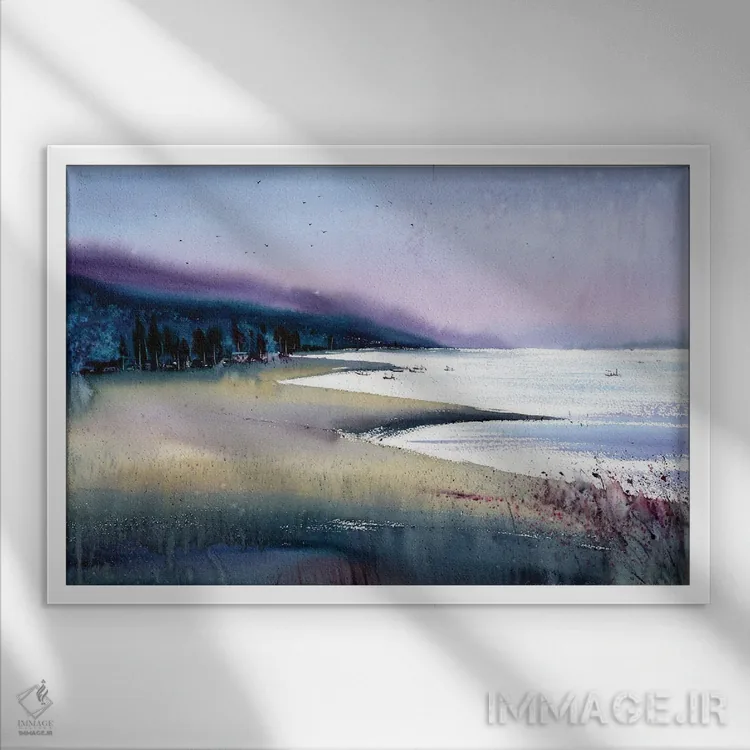 براساس پالت سرد اثر، قاب سفید مات (فریم باریک) پیشنهاد اول است و نقرهای برسخورده (متالیک) مکمل. برای سفارشهای پروژهای با ابعاد و قابهای اختصاصی با ایماژ در تماس باشید.