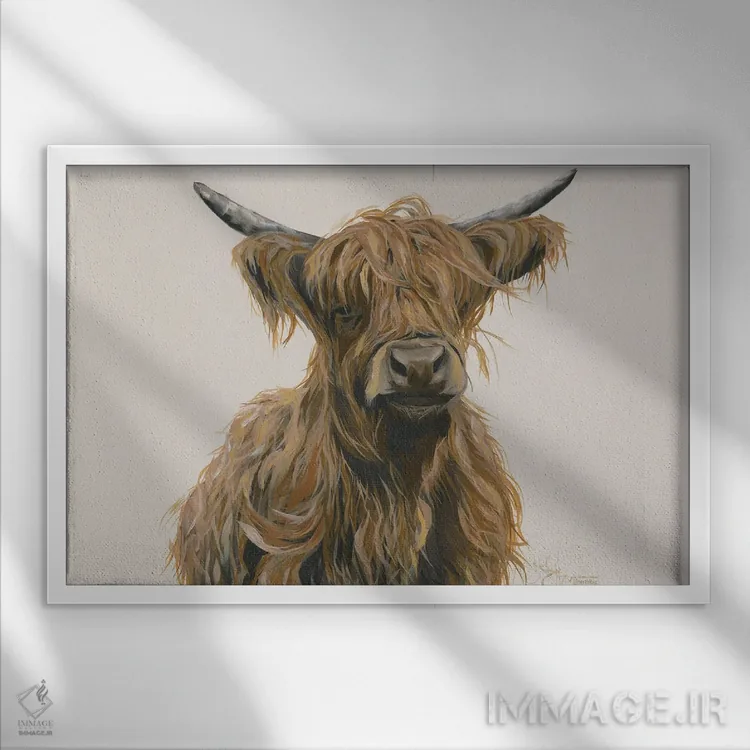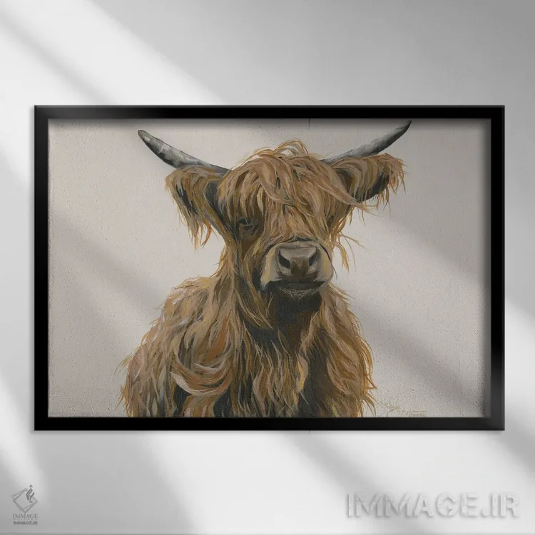 برای اتاقی که به یک عنصر دوستداشتنی نیاز دارد، «هری اهل ارتفاعات (سکاچ یا گاو کوهستانی احتمالا)» اثرِ «هولیهکس آرت (استودیو هنری)» یک لبخند ریز به چیدمان میدهد؛ برای نشیمنهای خانوادگی انتخابی خوشسلیقه است. با قاب چوبی یا مشکی، حس مرتبتری پیدا میکند.