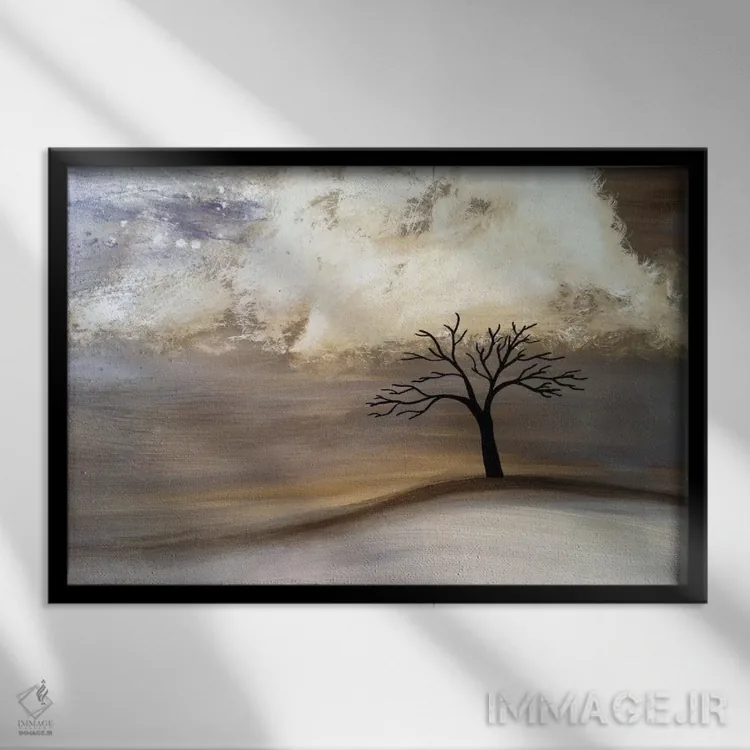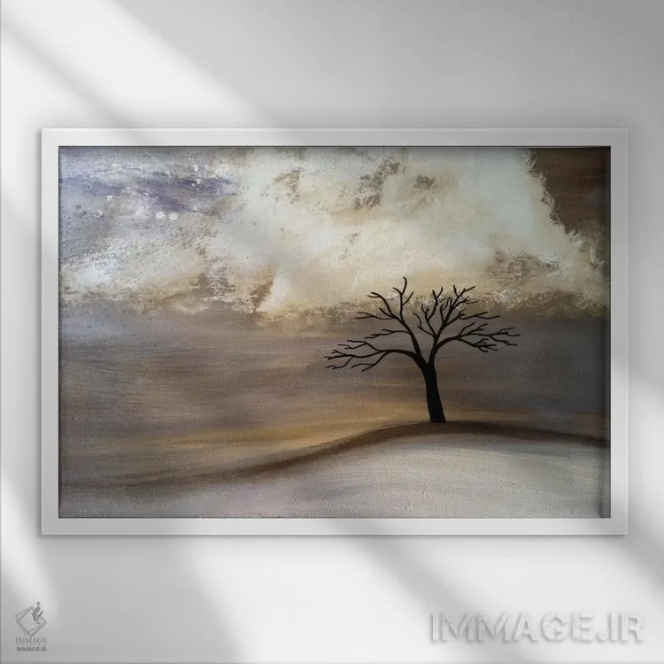 براساس پالت گرم اثر، قاب بلوط روشن (چوبی) پیشنهاد اول است و استخوانی ملایم مکمل. برای سفارشهای پروژهای با ابعاد و قابهای اختصاصی با ایماژ در تماس باشید.