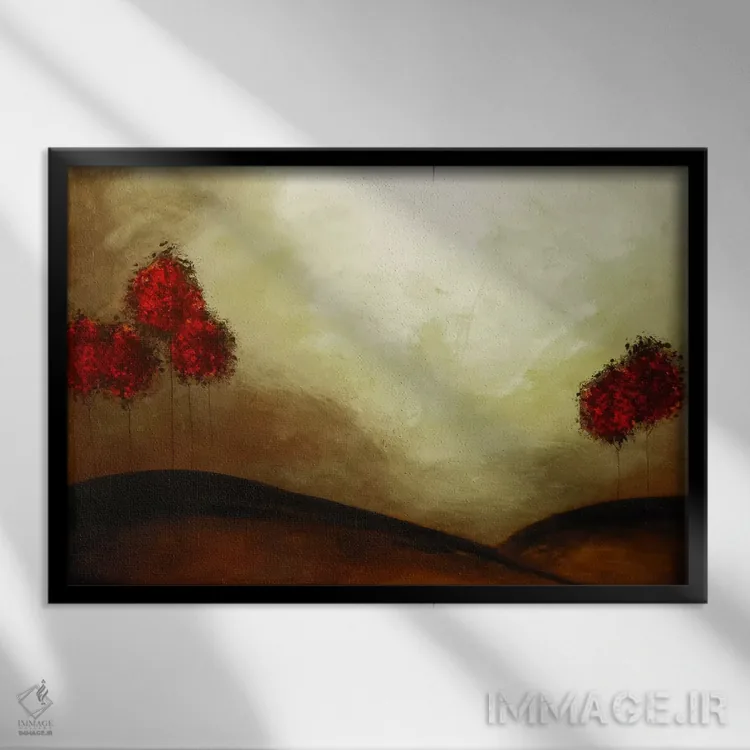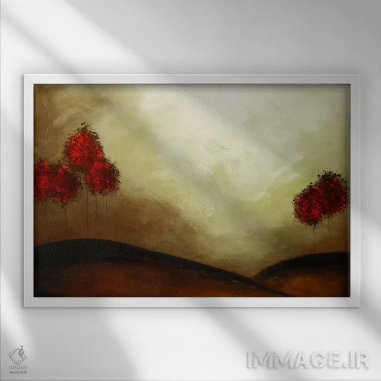 براساس پالت گرم اثر، قاب بلوط روشن (چوبی) پیشنهاد اول است و استخوانی ملایم مکمل. برای سفارشهای پروژهای با ابعاد و قابهای اختصاصی با ایماژ در تماس باشید.