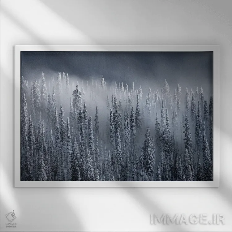 براساس پالت سرد اثر، قاب سفید مات (فریم باریک) پیشنهاد اول است و نقرهای برسخورده (متالیک) مکمل. برای سفارشهای پروژهای با ابعاد و قابهای اختصاصی با ایماژ در تماس باشید.