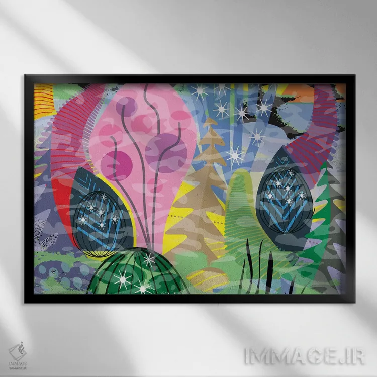 براساس پالت ترکیبی اثر، قاب تیک گرم (چوبی) پیشنهاد اول است و مشکی مات (فریم متوسط) مکمل. برای سفارشهای پروژهای با ابعاد و قابهای اختصاصی با ایماژ در تماس باشید.