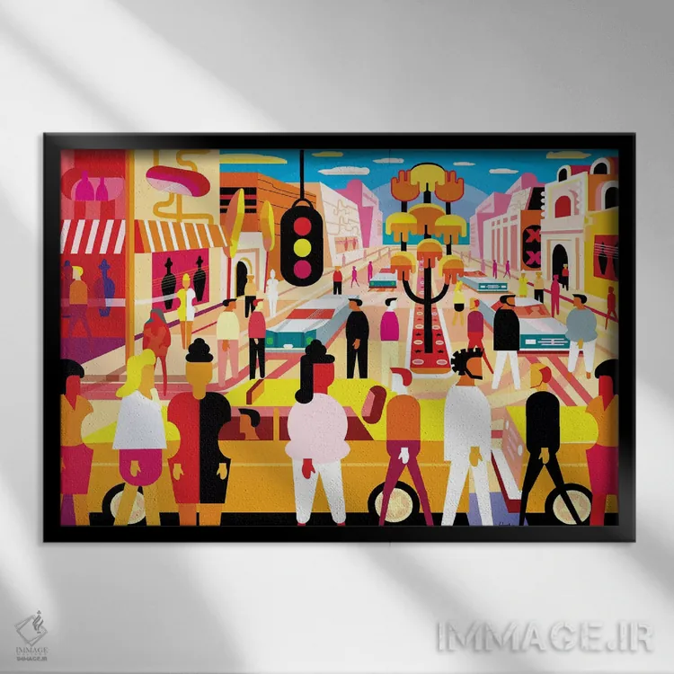 براساس پالت ترکیبی اثر، قاب تیک گرم (چوبی) پیشنهاد اول است و مشکی مات (فریم متوسط) مکمل. برای سفارشهای پروژهای با ابعاد و قابهای اختصاصی با ایماژ در تماس باشید.