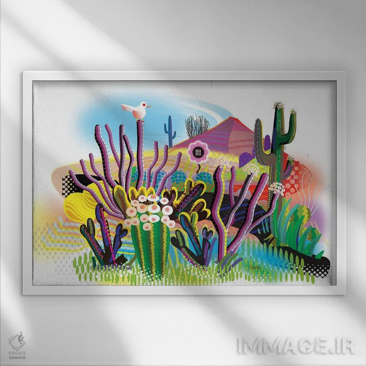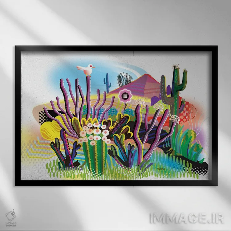 براساس پالت ترکیبی اثر، قاب تیک گرم (چوبی) پیشنهاد اول است و مشکی مات (فریم متوسط) مکمل. برای سفارشهای پروژهای با ابعاد و قابهای اختصاصی با ایماژ در تماس باشید.