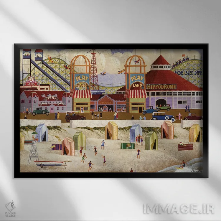 برای دیواری که دوست دارید «حرف داشته باشد»، «سرزمین بازی» اثرِ «هرونیم» به چیدمان، عمق و وقار میدهد؛ برای دکورهای کلاسیک با چوب و پارچه پیشنهاد میشود. در کنار قاب مناسب، جلوهٔ کار چند برابر میشود.