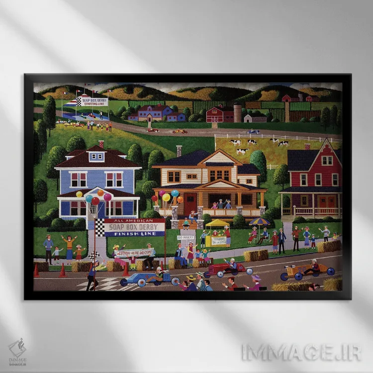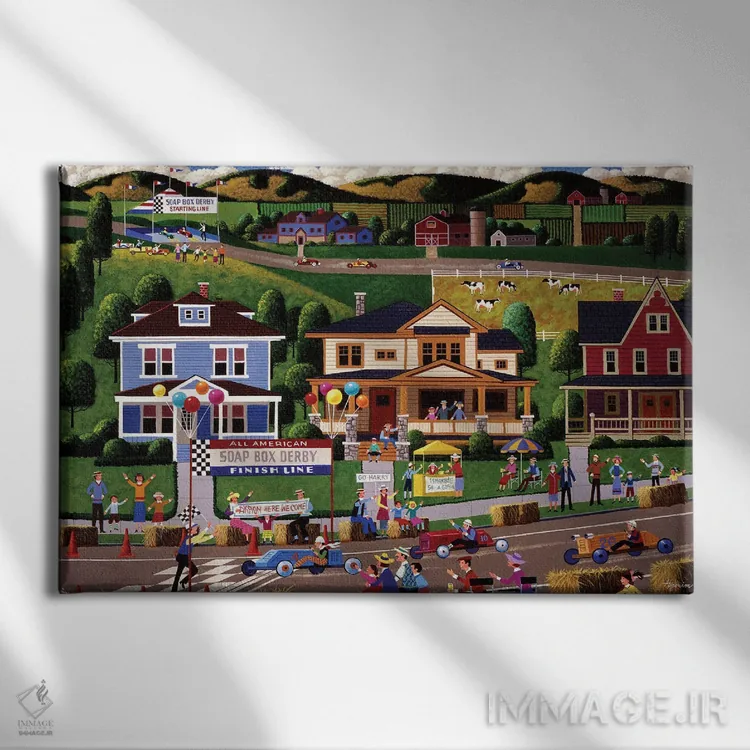 در این اثر، «مسابقه خودرو دستساز (یا سورتمههای کودکانه)» اثرِ «هرونیم» فضا را روشنتر و زندهتر نشان میدهد؛ برای فضاهایی با نور طبیعی پیشنهاد میشود. روی دیوار، طبیعی و متعادل دیده میشود—بیاغراق و درست.