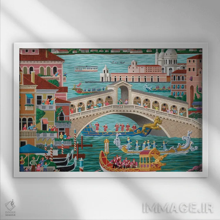 برای دیواری که میخواهید سلیقهتان را آرام و دقیق نشان بدهد، «کارناوال قایق ونیز» اثرِ «هرونیم» جلوهٔ اتاق را یک پله حرفهایتر میکند؛ برای محیطهای کاری و استودیوهای خلاق پیشنهاد میشود. جزئیاتش نزدیکِ کار هم ارزش نگاه دارد.