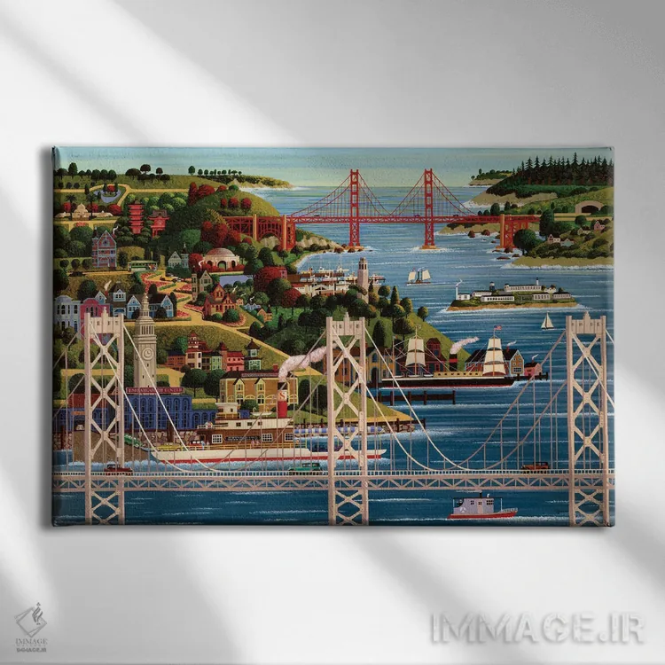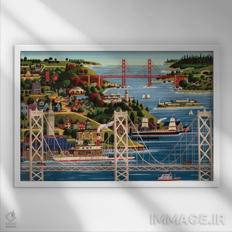 وقتی چیدمان را با دقت میچینید، «پلهای سان فرانسیسکو» اثرِ «هرونیم» جلوهٔ دیوار را منسجمتر میکند؛ برای راهروها و ورودیهای مینیمال پیشنهاد میشود. یک انتخاب خوشسلیقه است که با گذر زمان هم تازه میماند.