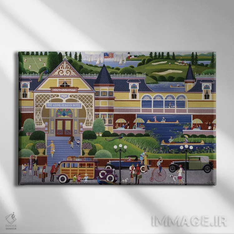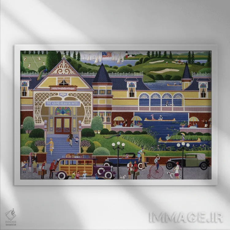 «هتل بزرگ طاووس» اثرِ «هرونیم» میتواند حس نظم و استحکام به فضا بدهد؛ برای راهروهای شیک پیشنهاد شود. برای دیوار گالری هم گزینهٔ خوبیست.