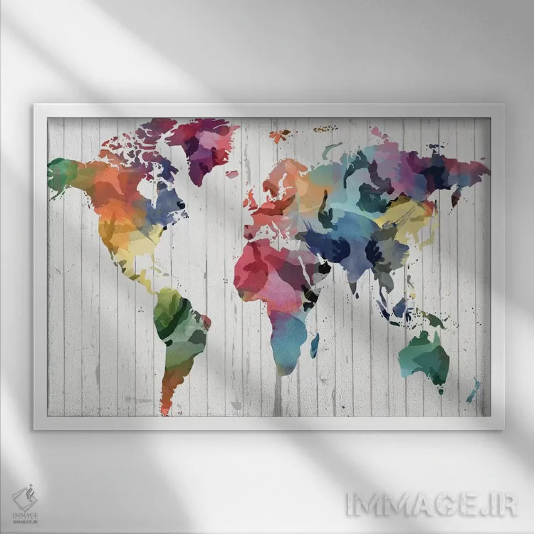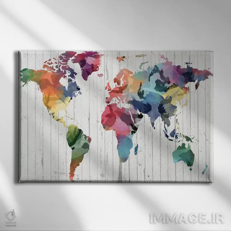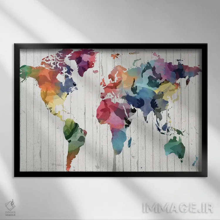 «نقشه جهان آبرنگی چوبی» اثرِ «فایو بای فایو کالکتیو» اگر دنبال اثر انتزاعیِ قابلچیدمان هستید که فضا را سنگین نکند، گزینهی خوبیست.