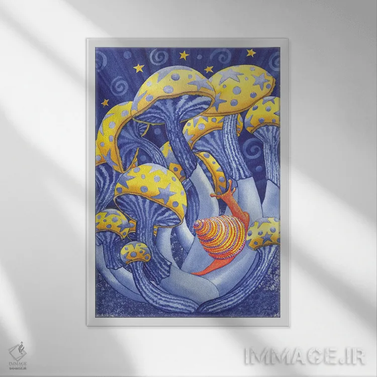 برای دیوارهای ساده، «قارچهای جادویی» اثرِ «کترین جی مکالروی» در کنار رنگهای خنثی، تضاد دلچسبی میسازد؛ برای خانههایی با چوب و پارچههای گرم انتخابی خوشسلیقه است. به دیوار، قصه میدهد—اما قصهای آرام و شیک.