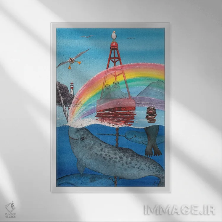در «تکشاخ دریا (ناروال)» اثرِ «کترین جی مکالروی»، حضور حیوانات به فضا، گرمیِ ملایم اضافه میکند؛ برای دیوار کنار میز کار انتخابی خوشسلیقه است. هم فضا را گرم میکند، هم شلوغش نمیکند.