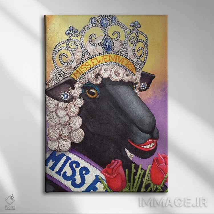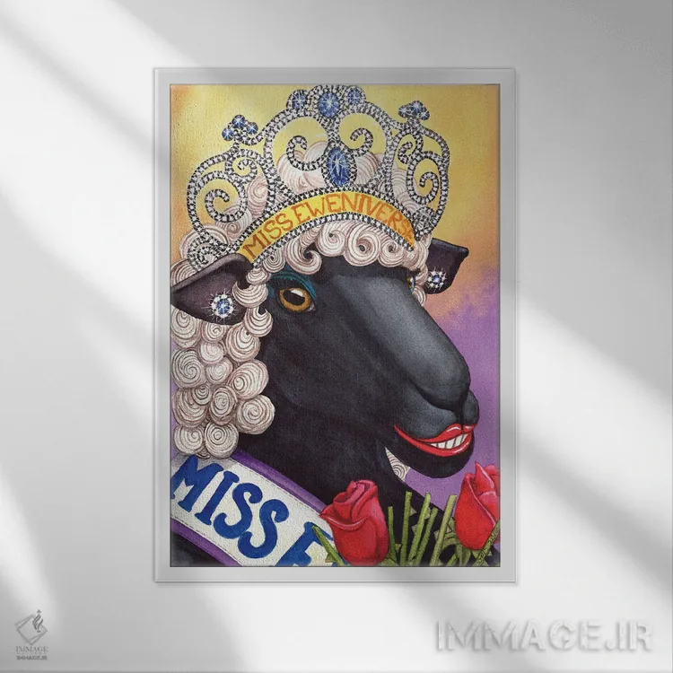 «خانم جهان گوسفندی! (طنز)» اثرِ «کترین جی مکالروی» از آن کارهاییست که در کنار رنگهای خنثی، تضاد دلچسبی میسازد؛ برای خانههایی با چوب و پارچههای گرم انتخاب خوبیست. با قاب چوبی یا مشکی، حس مرتبتری پیدا میکند.