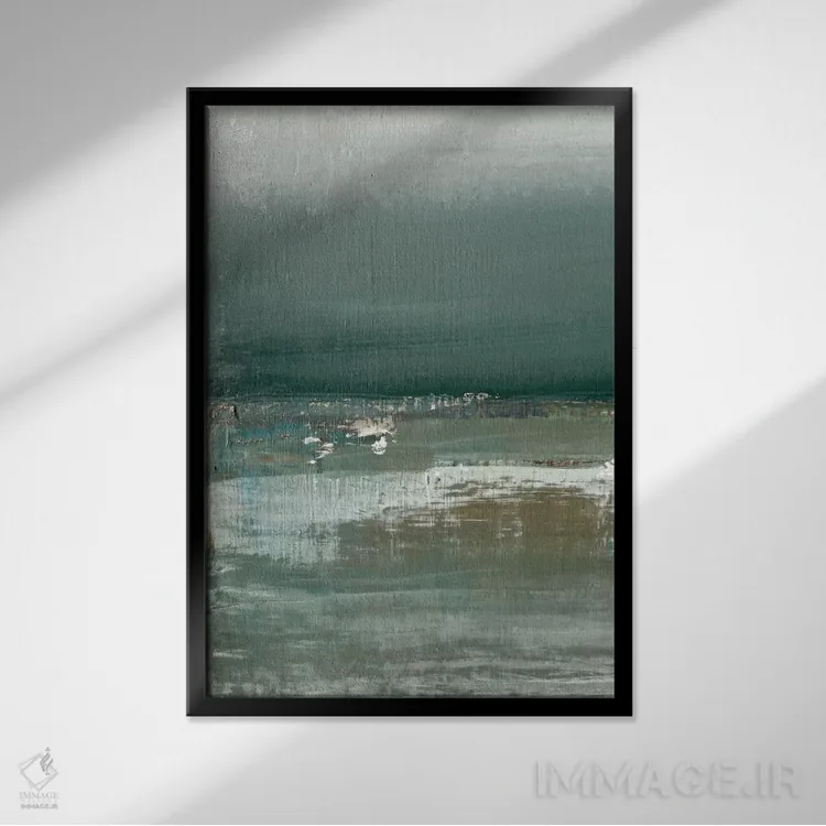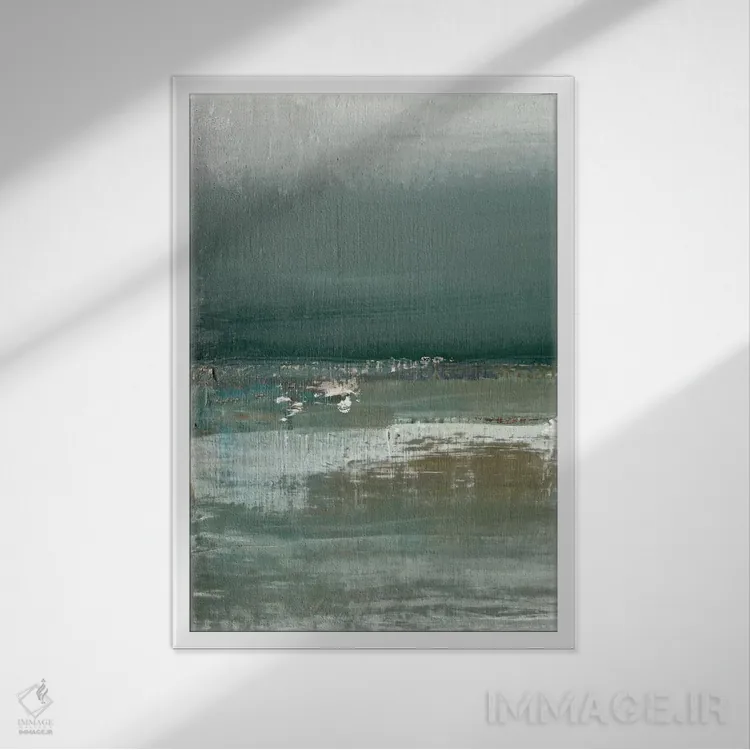 براساس پالت سرد اثر، قاب سفید مات (فریم باریک) پیشنهاد اول است و نقرهای برسخورده (متالیک) مکمل. برای سفارشهای پروژهای با ابعاد و قابهای اختصاصی با ایماژ در تماس باشید.