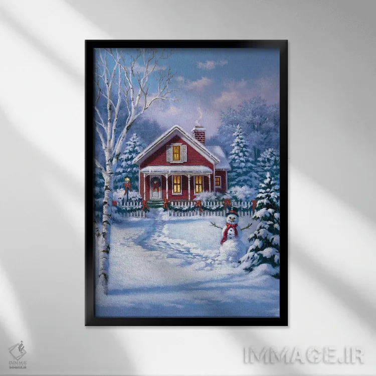 تابلو دکوراتیو خانه قرمز با آدم برفی اثر کربرت گوتیه - نمای پرسپکتیو محصول