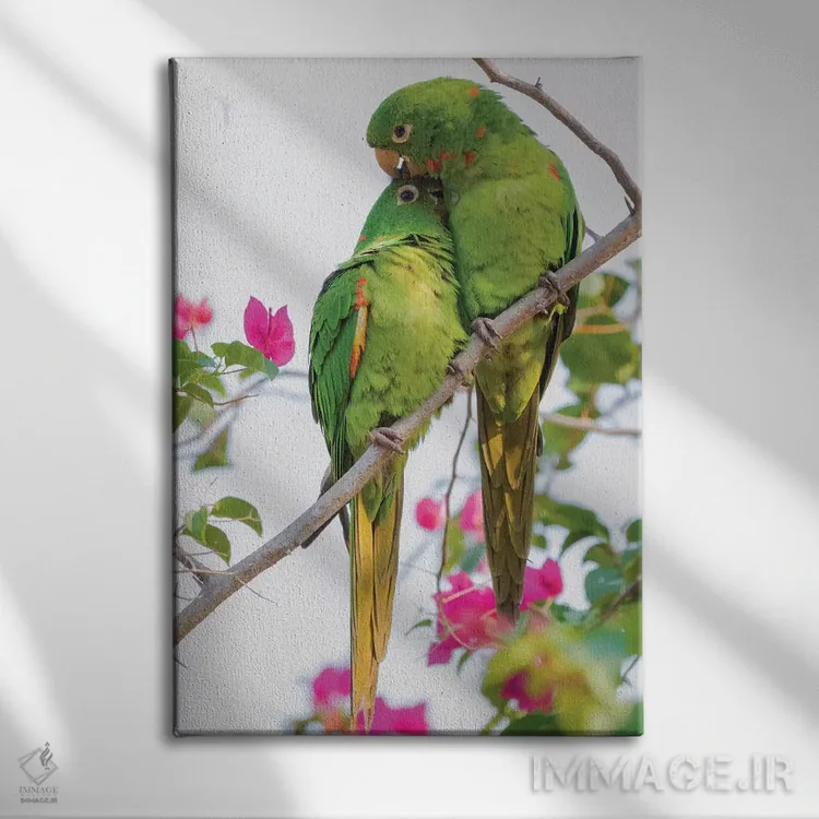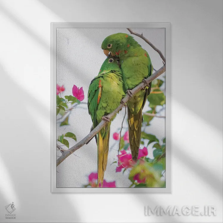 برای دکورهای صمیمی، «پاراکیت چشمسفید مشغول تیمار یکدیگر» اثرِ «کن آرچر» بافت و جزئیات را طوری نشان میدهد که نگاه میماند؛ برای دکورهایی با رنگهای خنثی انتخابی خوشسلیقه است. هم فضا را گرم میکند، هم شلوغش نمیکند.