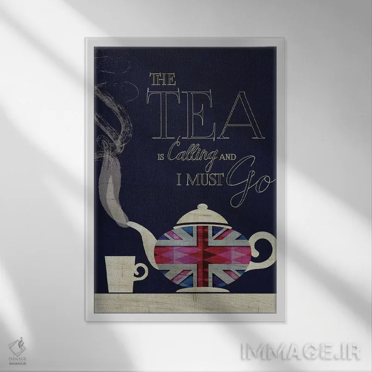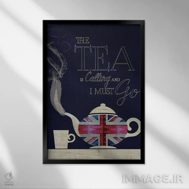 «چای مرا میخواند، یونیون جک (پرچم انگلستان)» اثرِ «چایا شرادر» یک قاب تایپوگرافیک است که ریتم فضا را منظم نگه میدارد؛ برای دیوارهای سفید و چیدمانهای ساده، گزینهی خوبی است.