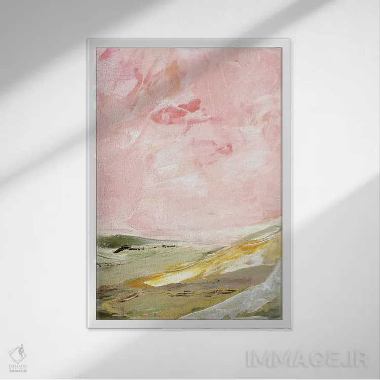 تابلو انتزاعی تپه های سبز و صورتی ۲ اثر مارسی چپمن