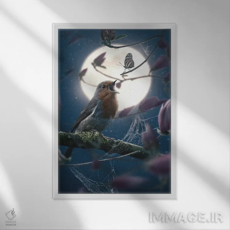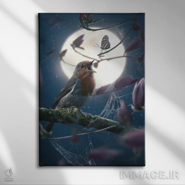 تابلو دکوراتیو پروانه و فنچ اروپایی اثر آدام کازینز - نمای پرسپکتیو محصول