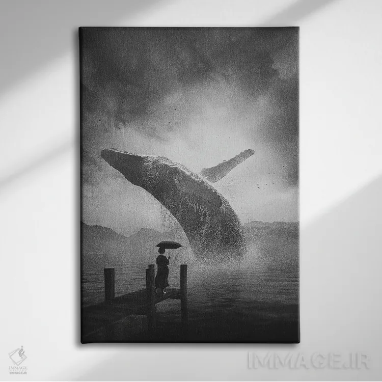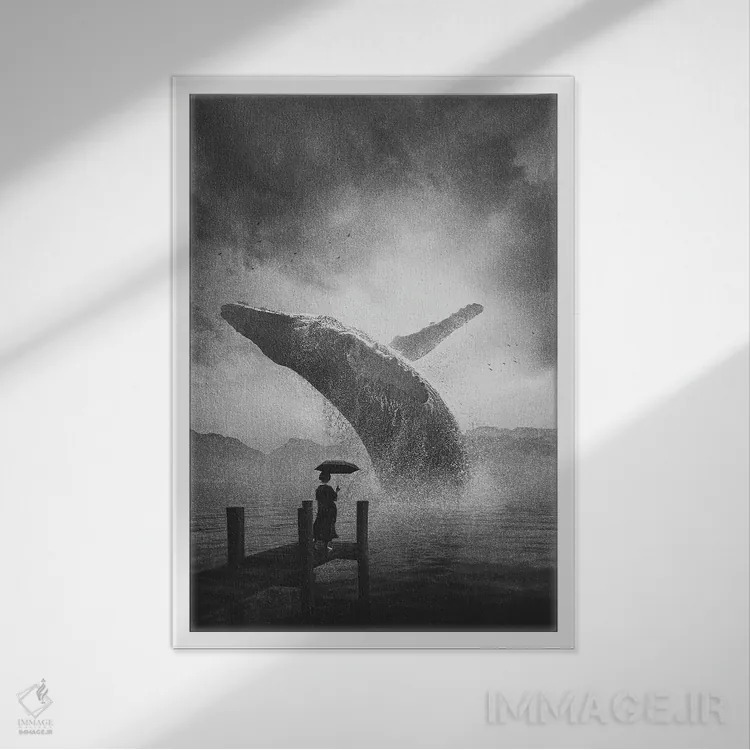 در «نهنگ غولپیکر (سیاه و سفید)» اثرِ «آدام کازینز»، حضور حیوانات بدون کودکانه شدن، بازیگوش و خوشپرداخت میماند؛ برای خانههایی با چوب و پارچههای گرم انتخابی خوشسلیقه است. با قاب چوبی یا مشکی، حس مرتبتری پیدا میکند.