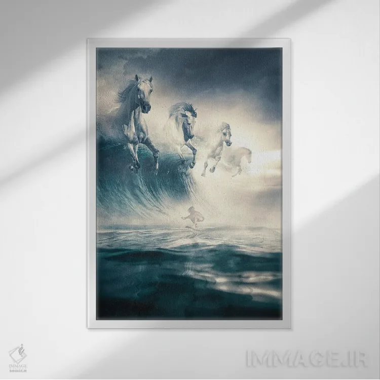 براساس پالت سرد اثر، قاب سفید مات (فریم باریک) پیشنهاد اول است و نقرهای برسخورده (متالیک) مکمل. برای سفارشهای پروژهای با ابعاد و قابهای اختصاصی با ایماژ در تماس باشید.