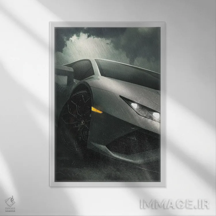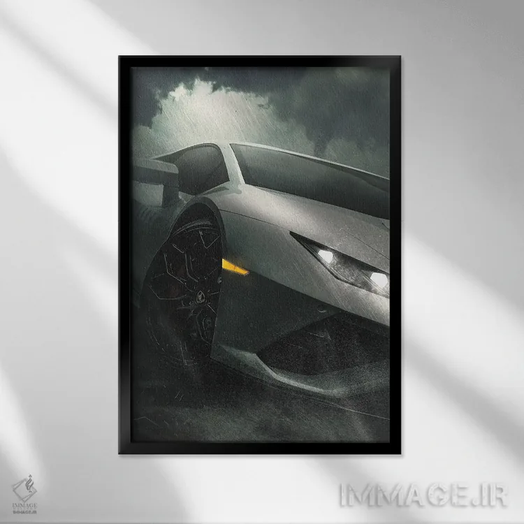 تابلو دکوراتیو لامبورگینی زیر باران اثر آدام کازینز