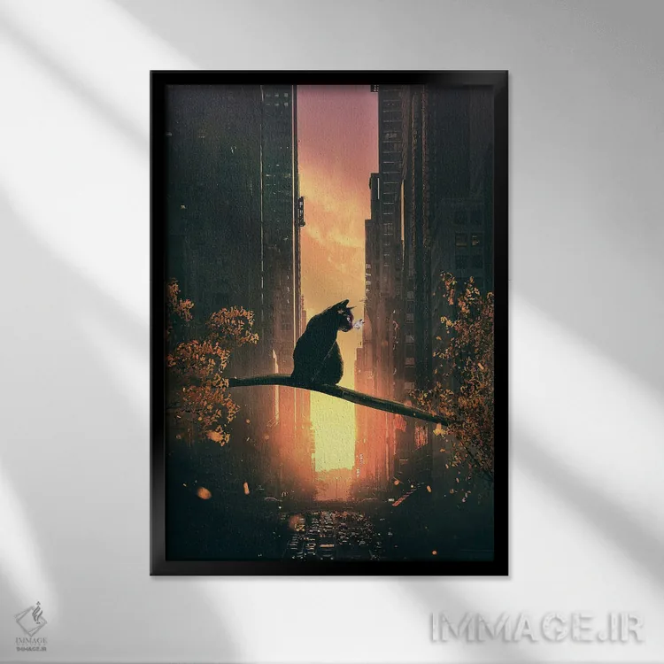برای دیوارهای ساده، «گربه سیاه در شهر» اثرِ «آدام کازینز» به دیوار، انرژیِ نرم و زنده میدهد؛ برای اتاق کودک (بدون لحن کودکانه) انتخابی خوشسلیقه است. هر بار نگاهش میکنید، یک جزئیات تازه به چشم میآید.
