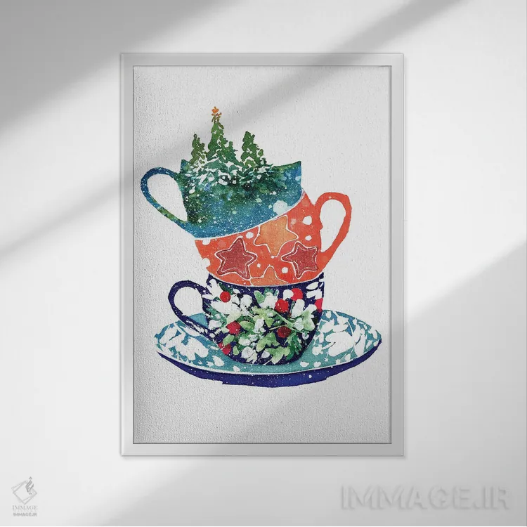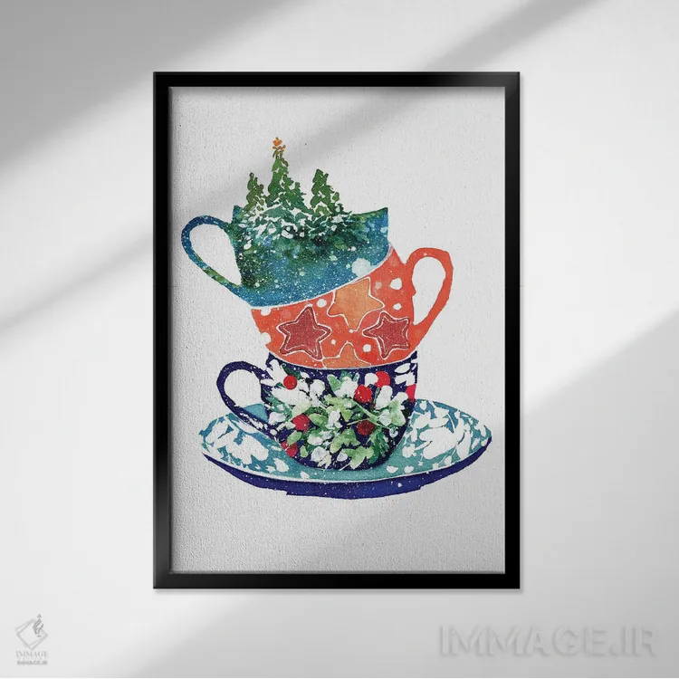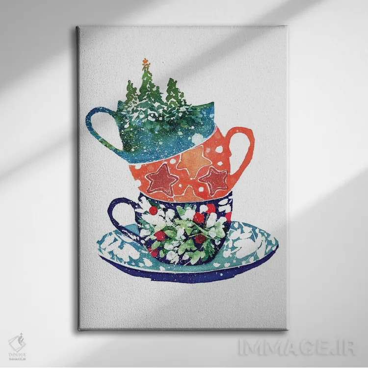تابلو دکوراتیو فنجان های روی هم چیده کریسمس اثر کریتیو اینگرید