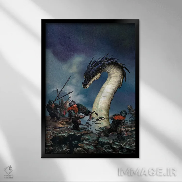تابلو دکوراتیو اژدهای مارشکل اثر سیروئلو - نمای قاب‌دار مشکی