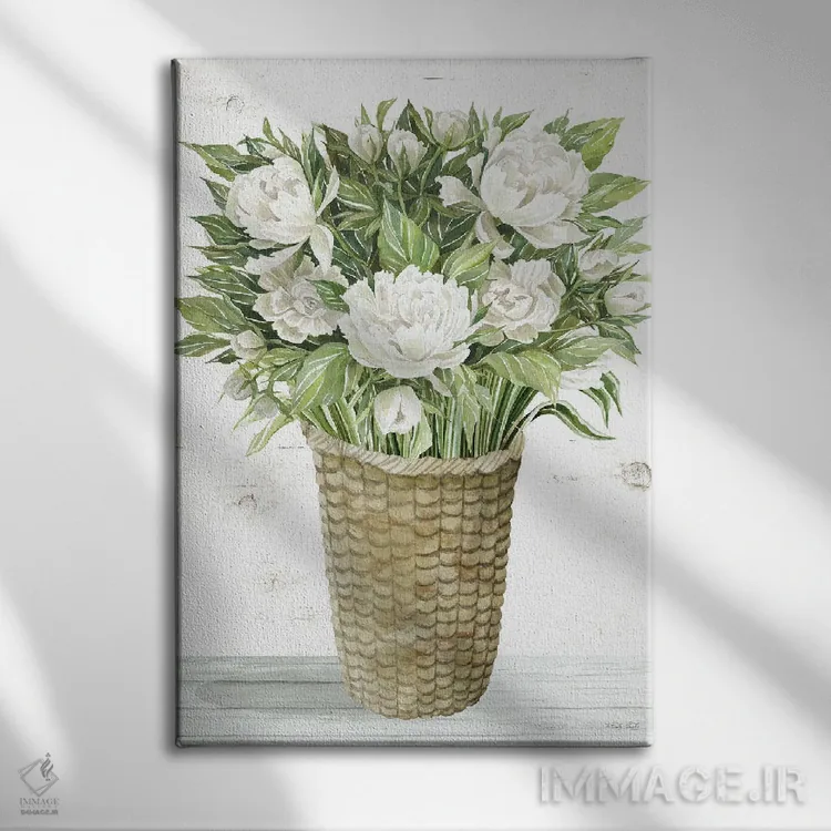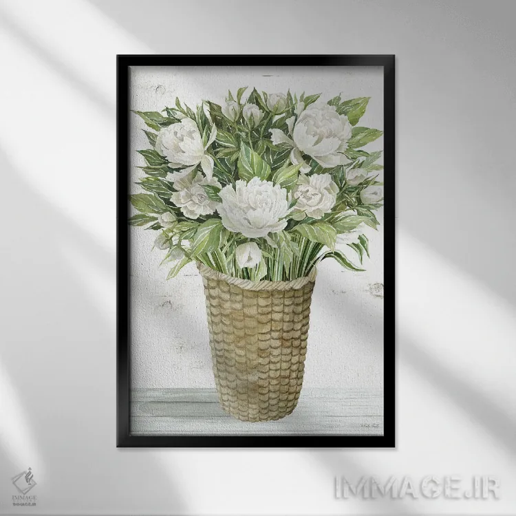 تابلو دکوراتیو سبد گل پئونی اثر سیندی جیکوبز