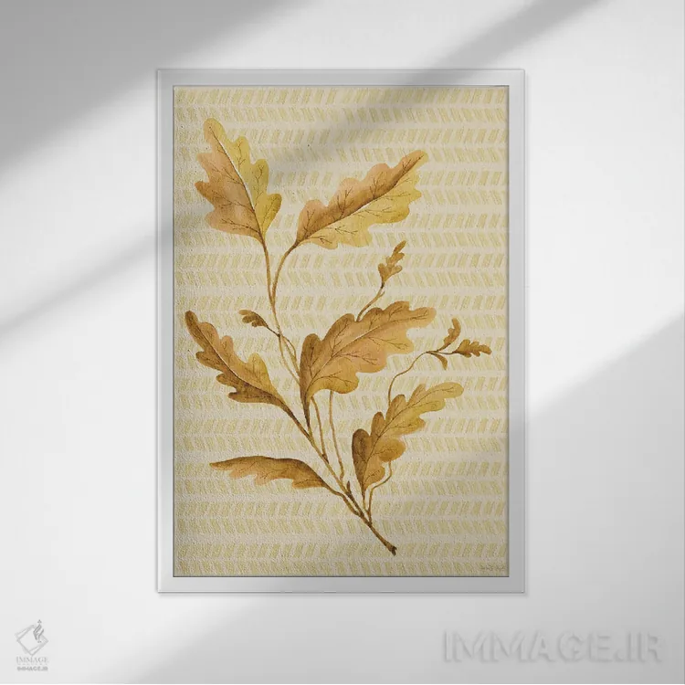براساس پالت گرم اثر، قاب بلوط روشن (چوبی) پیشنهاد اول است و استخوانی ملایم مکمل. برای سفارشهای پروژهای با ابعاد و قابهای اختصاصی با ایماژ در تماس باشید.