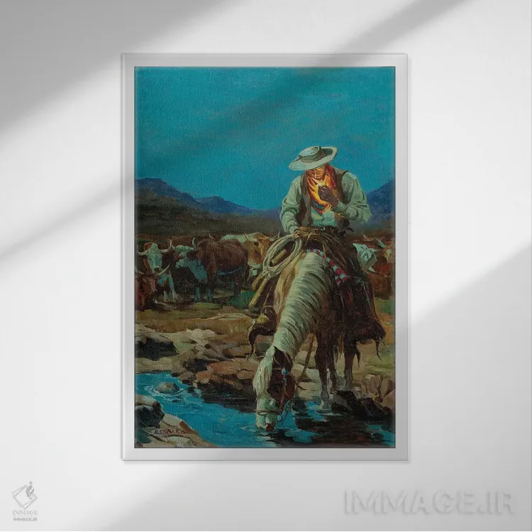 براساس پالت ترکیبی اثر، قاب بلوط روشن (چوبی) پیشنهاد اول است و استخوانی ملایم مکمل. برای سفارشهای پروژهای با ابعاد و قابهای اختصاصی با ایماژ در تماس باشید.