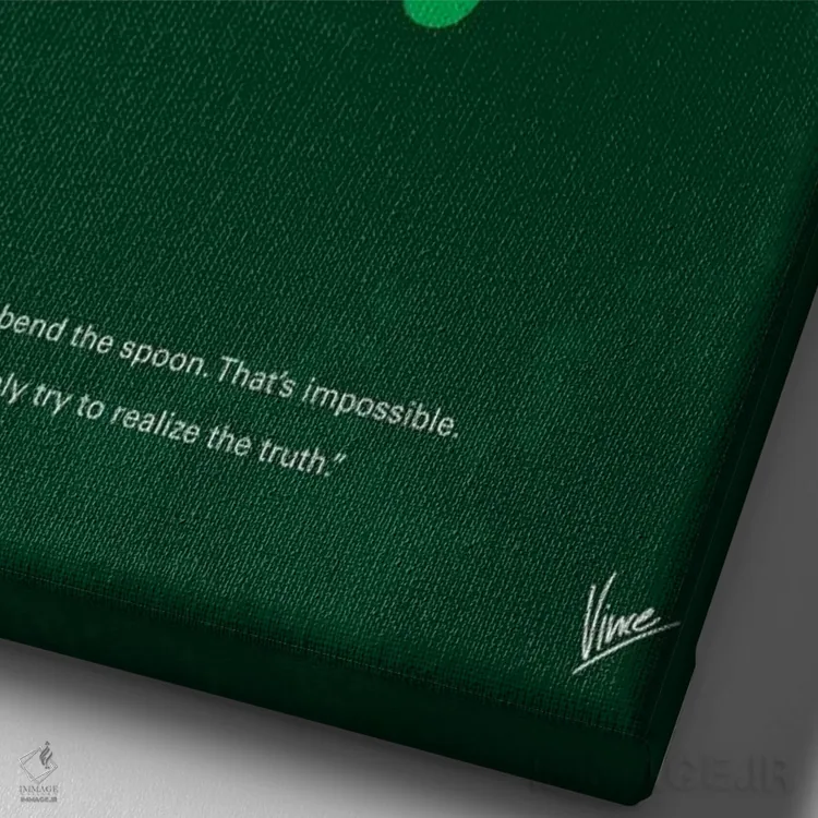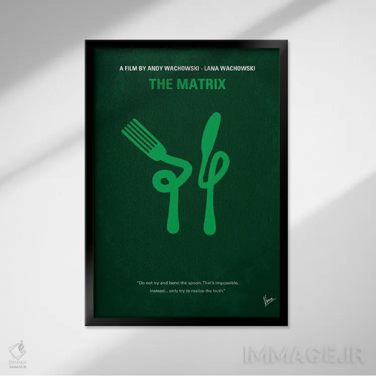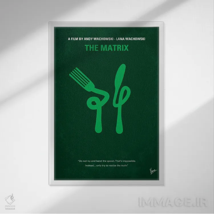 وقتی چیدمان را با دقت میچینید، «پوستر مینیمال فیلم ماتریکس (قاشق را خم نکن)» اثرِ «چانکونگ» بین نور و رنگ، تعادل خوشنشینی میسازد؛ برای نشیمنهای صمیمی و پذیراییهای شیک پیشنهاد میشود. فضا را شلوغ نمیکند؛ فقط دقیقترش میکند.