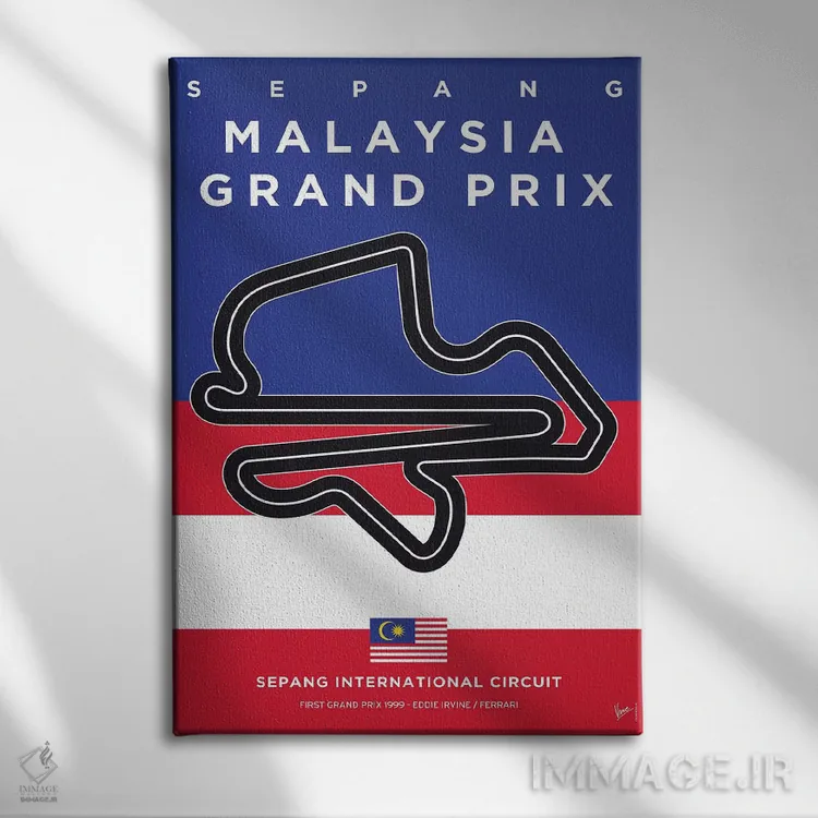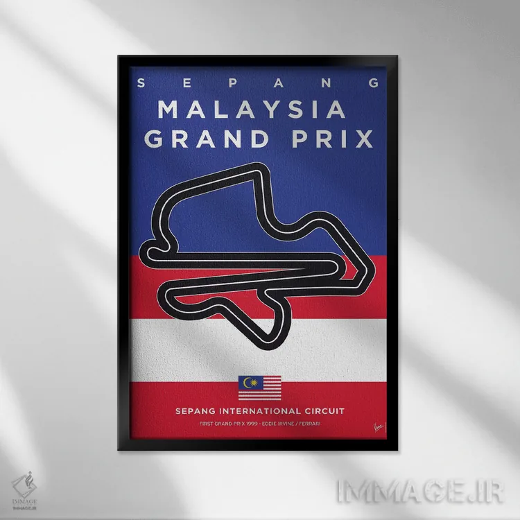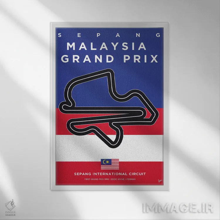 «پوستر مینیمال پیست سپانگ (فرمول یک مالزی)» اثرِ «چانکونگ» برای چیدمانهای صنعتی یا مدرنِ شهری هم مینشیند؛ چون تصویر، واضح و امروزی است.